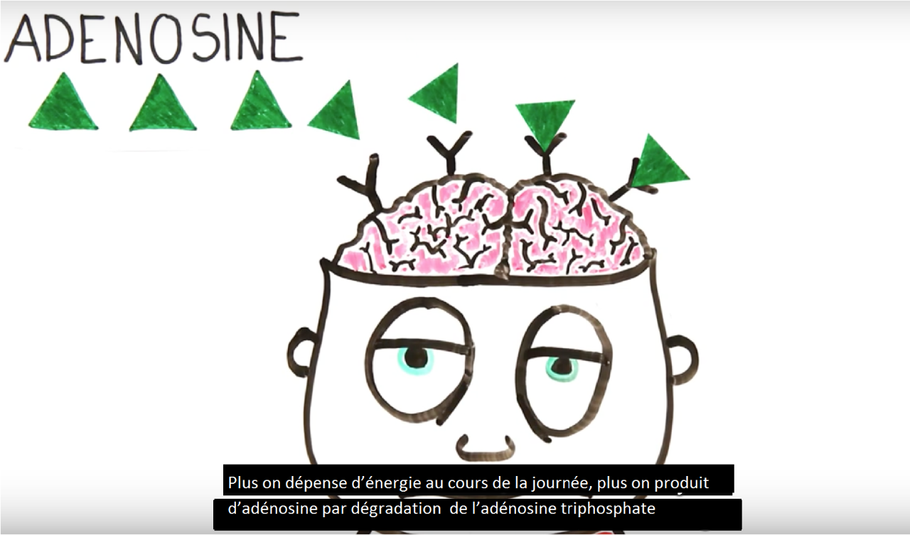 Plusieurs caractéristiques de l'adénosine en font un candidat idéal comme facteur hypnogène : sa concentration dans le cerveau est plus élevée durant l’éveil que durant le sommeil; elle croît durant un éveil prolongé; et l’administration d’adénosine ou de ses agonistes induit la somnolence. L’adénosine est un produit de la dégradation de l’ATP (adénosine triphosphate), la molécule qui sert de « monnaie énergétique » à nos différentes fonctions cellulaires. La forte activité cérébrale durant l’éveil entraîne une forte consommation d’ATP et par conséquent l’accumulation d’adénosine.